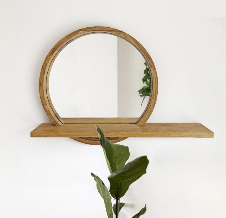 Teak wood rectangular framed mirror for elegant interiors.